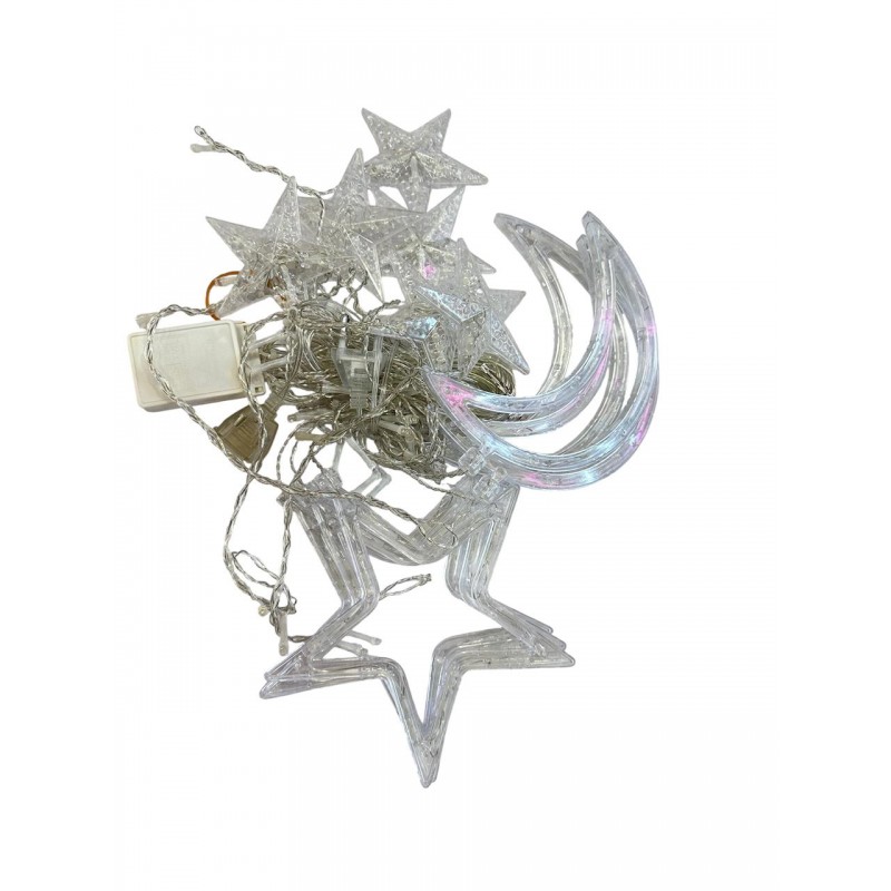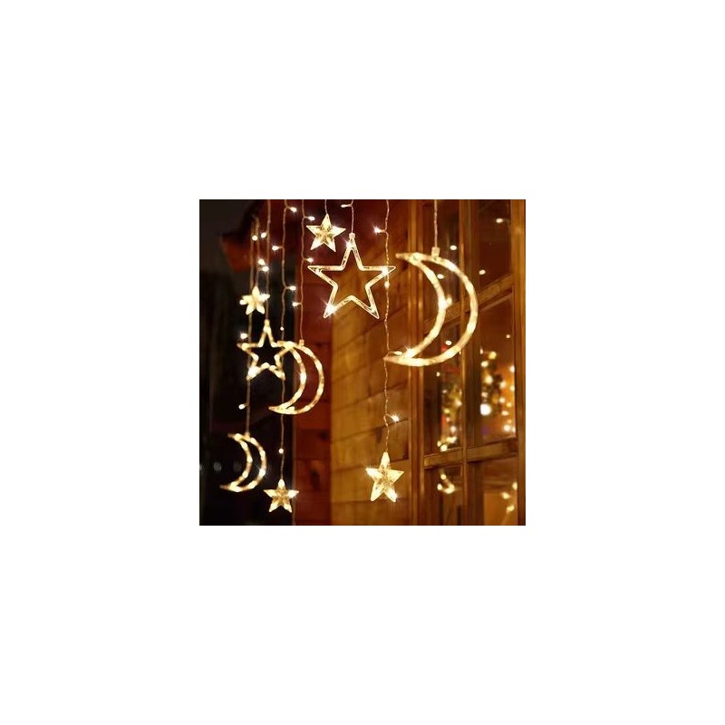 -  la guirlande lumineuse à LED pour le Ramadan mesure 3mètres de long, avec 3 croissants et 9 étoiles  lumineuses.