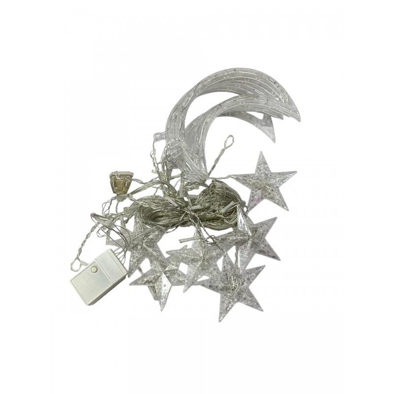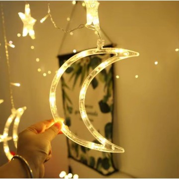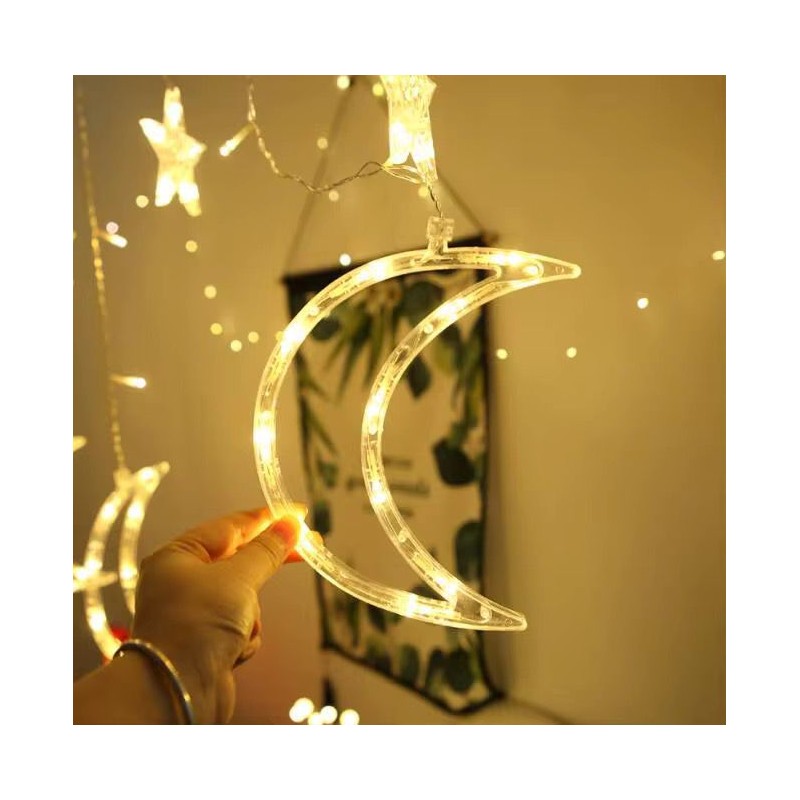 -  la guirlande lumineuse à LED pour le Ramadan mesure 3mètres de long, avec 6 croissants et 6 étoiles  lumineuses.