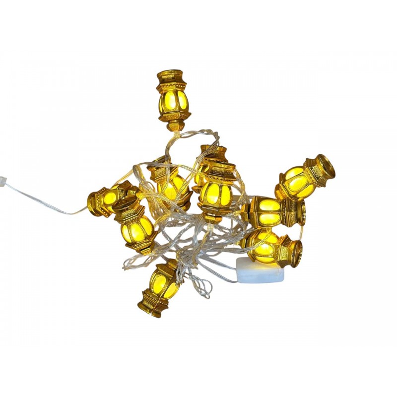-  la guirlande lumineuse à LED pour le Ramadan mesure 3mètres de long, avec 10 lanternes jaunes lumineuses.